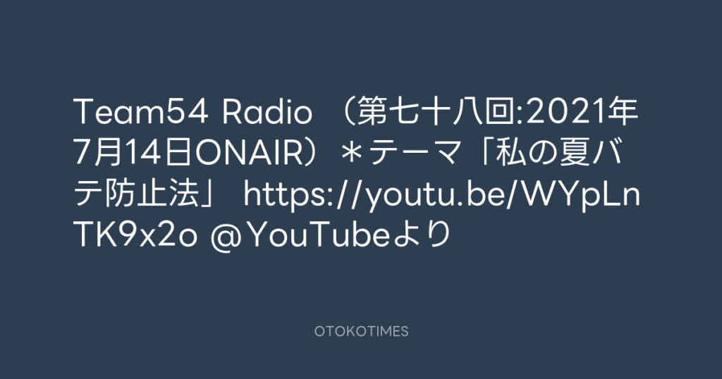 Team54 Radio (第七十八回:2021年7月14日ONAIR)*テーマ「私の夏バテ防止法」 ht... -