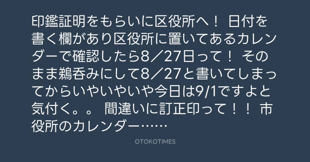 印鑑証明をもらいに区役所へ! 日付を書く欄があり区役所に置いてあるカレンダーで... -