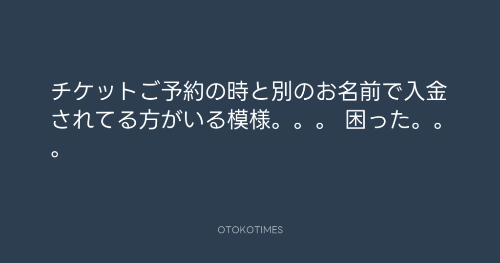 チケットご予約の時と別のお名前で入金されてる方がいる模様。。。 困った。。。 -