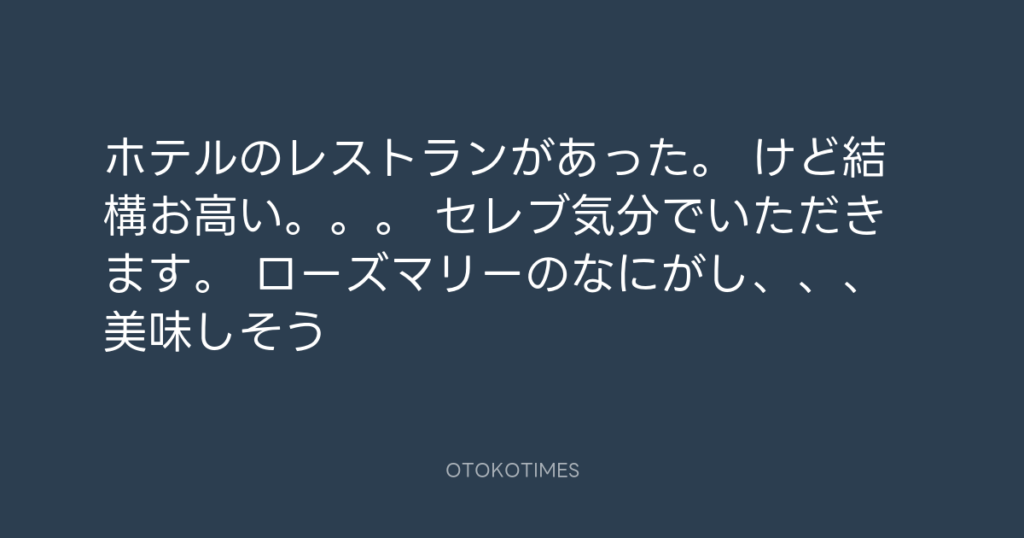 ホテルのレストランがあった。 けど結構お高い。。。 セレブ気分でいただきます。 ... -