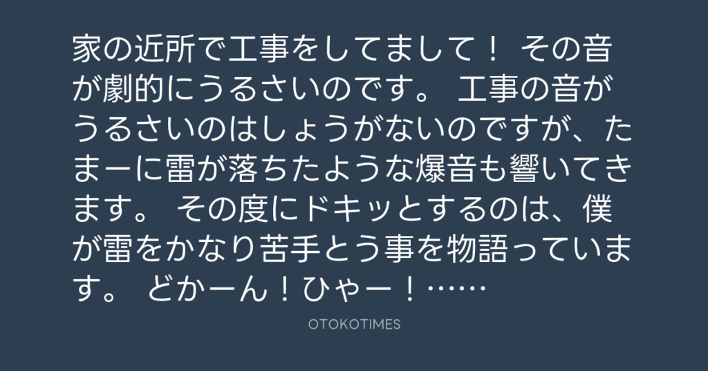 家の近所で工事をしてまして! その音が劇的にうるさいのです。 工事の音がうるさ... -