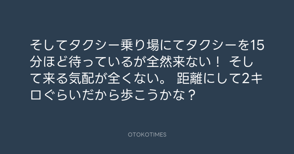 そしてタクシー乗り場にてタクシーを15分ほど待っているが全然来ない! そして来る... -