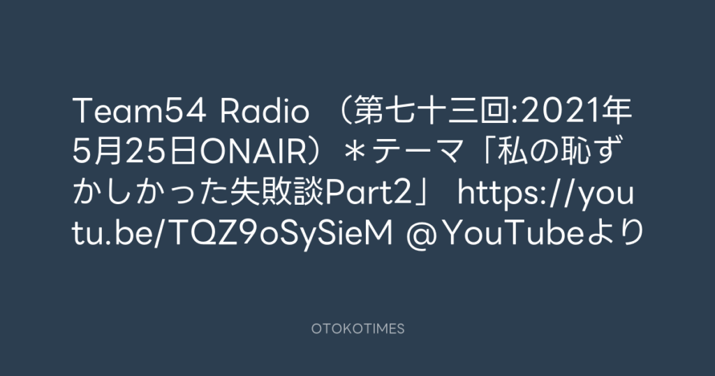 Team54 Radio (第七十三回:2021年5月25日ONAIR)*テーマ「私の恥ずかしかった失... -