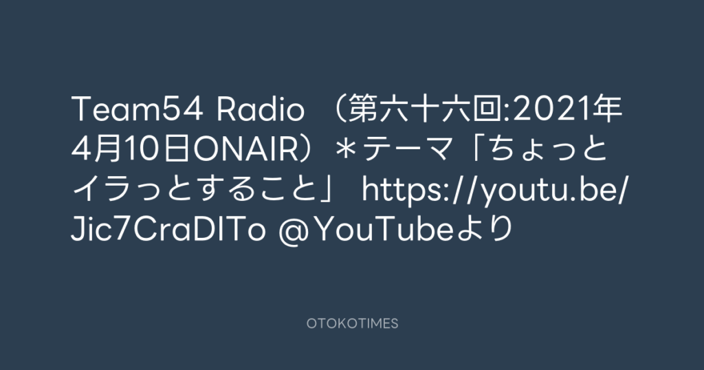 Team54 Radio (第六十六回:2021年4月10日ONAIR)*テーマ「ちょっとイラっとする... -
