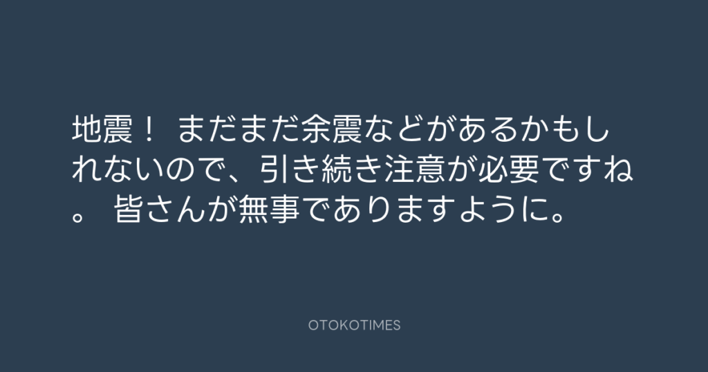 地震! まだまだ余震などがあるかもしれないので、引き続き注意が必要ですね。 皆... -