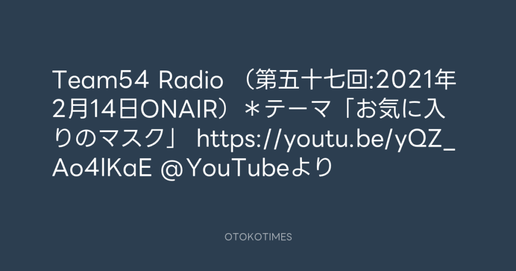 Team54 Radio (第五十七回:2021年2月14日ONAIR)*テーマ「お気に入りのマスク」 ... -