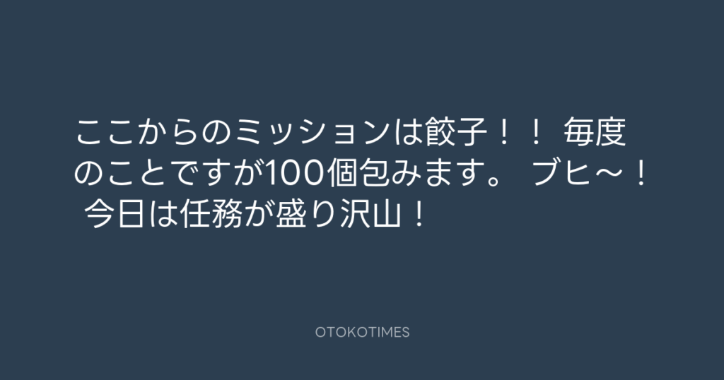 ここからのミッションは餃子!! 毎度のことですが100個包みます。 ブヒ〜! 今日... -