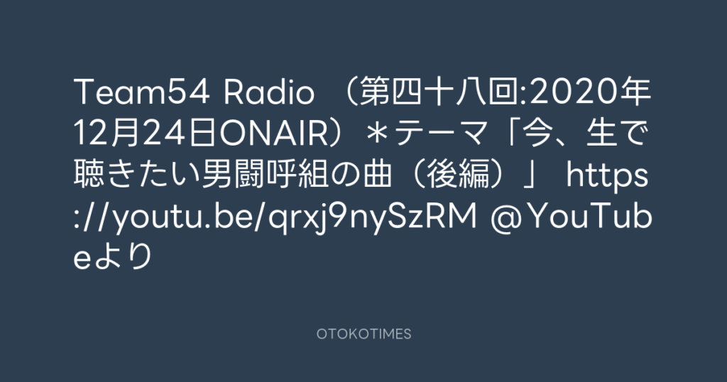 Team54 Radio (第四十八回:2020年12月24日ONAIR)*テーマ「今、生で聴きたい男闘...