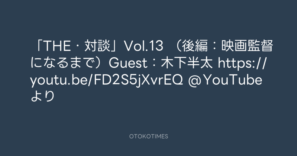 「THE・対談」Vol.13 (後編:映画監督になるまで)Guest:木下半太 https://youtu... -