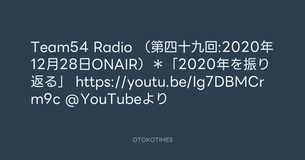 Team54 Radio (第四十九回:2020年12月28日ONAIR)*「2020年を振り返る」 https:/... -