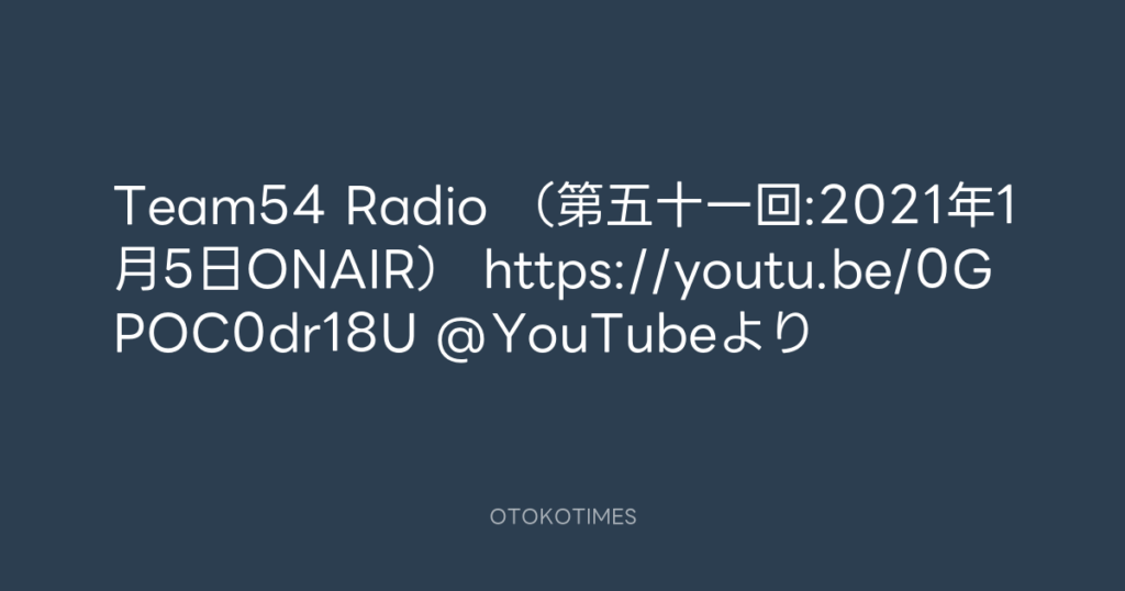 Team54 Radio (第五十一回:2021年1月5日ONAIR) https://youtu.be/0GPOC0dr18U @Y... -