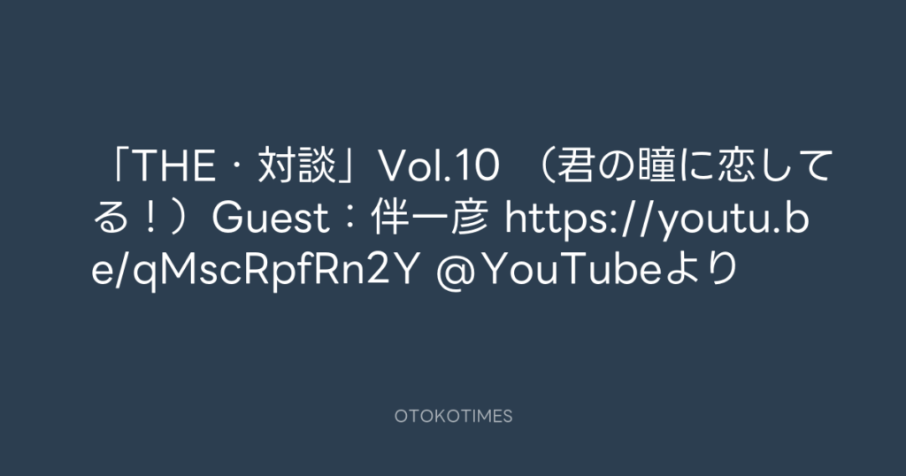 「THE・対談」Vol.10 (君の瞳に恋してる!)Guest:伴一彦 https://youtu.be/qMsc... -