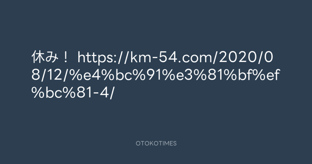 休み! https://km-54.com/2020/08/12/%e4%bc%91%e3%81%bf%ef%bc%81-4/ -