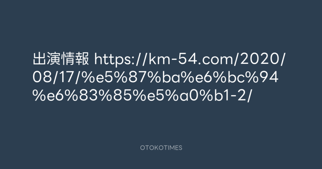 出演情報 https://km-54.com/2020/08/17/%e5%87%ba%e6%bc%94%e6%83%85%e5%a0%b1-2/ -