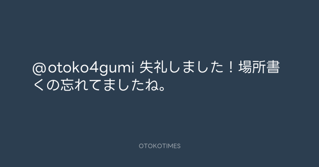 @otoko4gumi 失礼しました!場所書くの忘れてましたね。 -