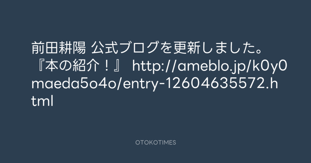 前田耕陽 公式ブログを更新しました。 『本の紹介!』 http://ameblo.jp/k0y0maeda... -
