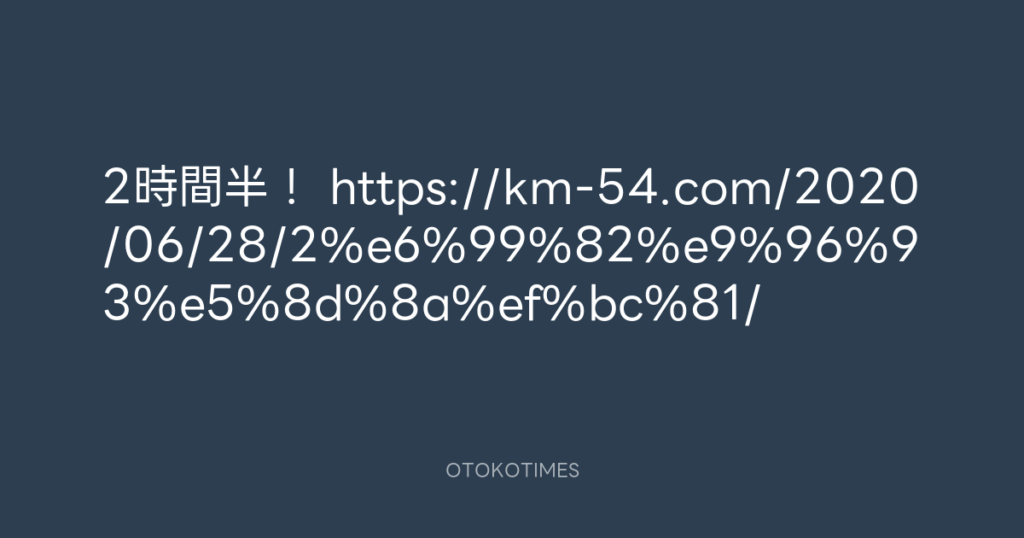 2時間半! https://km-54.com/2020/06/28/2%e6%99%82%e9%96%93%e5%8d%8a%ef%bc%81/ -