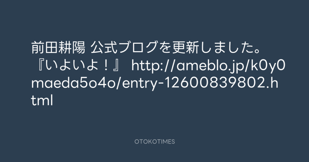 前田耕陽 公式ブログを更新しました。 『いよいよ!』 http://ameblo.jp/k0y0maeda... -
