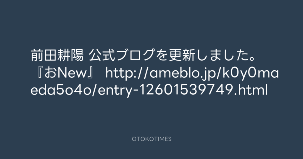 前田耕陽 公式ブログを更新しました。 『おNew』 http://ameblo.jp/k0y0maeda5o4o/... -