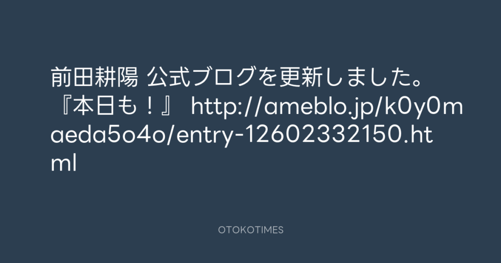 前田耕陽 公式ブログを更新しました。 『本日も!』 http://ameblo.jp/k0y0maeda5o... -