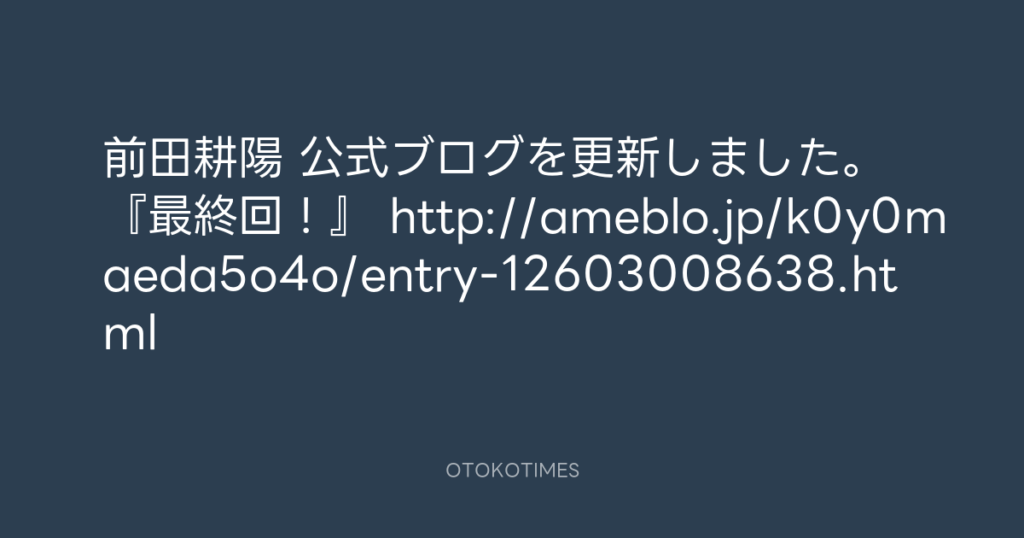 前田耕陽 公式ブログを更新しました。 『最終回!』 http://ameblo.jp/k0y0maeda5o... -