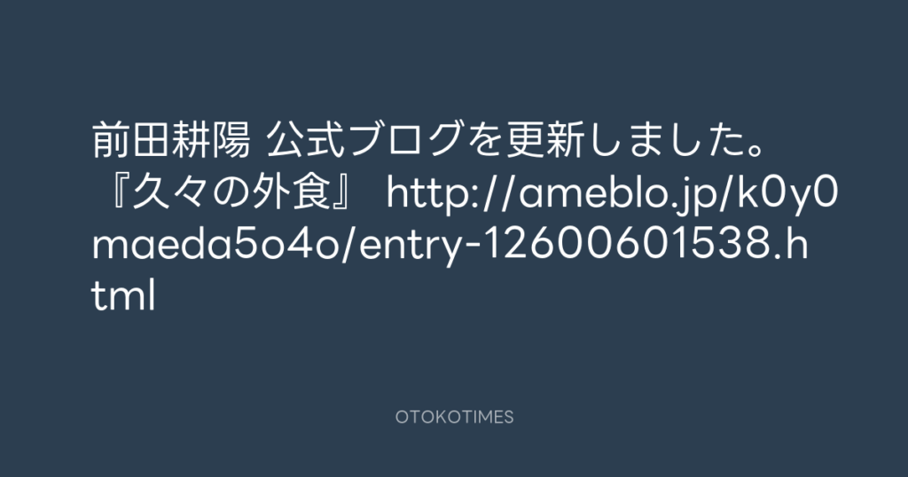 前田耕陽 公式ブログを更新しました。 『久々の外食』 http://ameblo.jp/k0y0maeda... -
