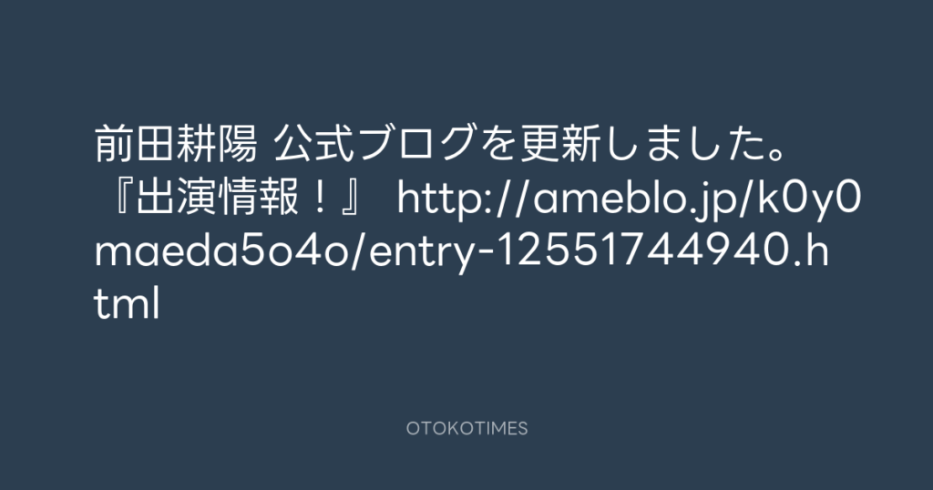 前田耕陽 公式ブログを更新しました。 『出演情報!』 http://ameblo.jp/k0y0maeda... -