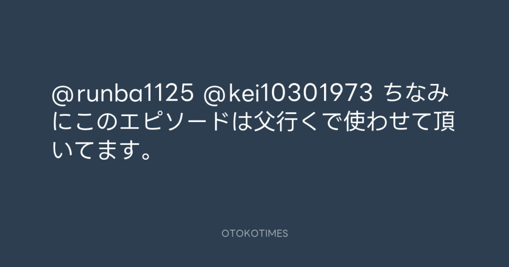 @runba1125 @kei10301973 ちなみにこのエピソードは父行くで使わせて頂いてます。 -