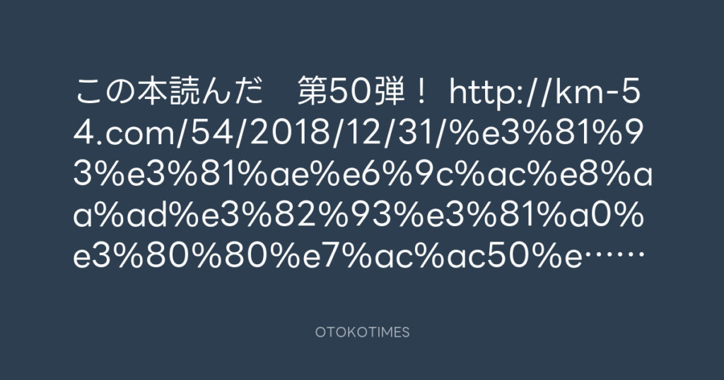 この本読んだ 第50弾! http://km-54.com/54/2018/12/31/%e3%81%93%e3%81%ae%e6%9... -