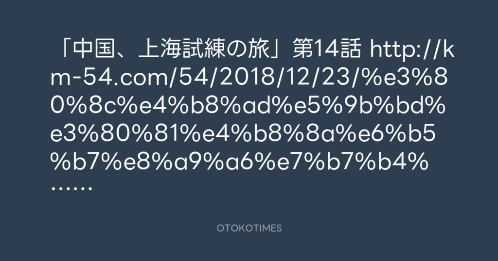 「中国、上海試練の旅」第13話 http://km-54.com/54/2018/12/22/%e3%80%8c%e4%b8%a... -
