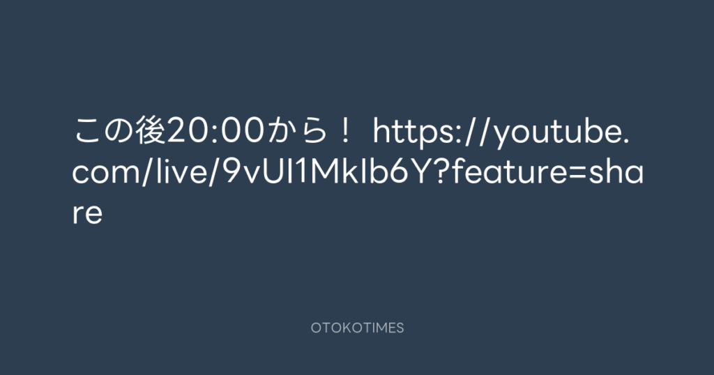 この後20:00から! https://youtube.com/live/9vUI1MkIb6Y?feature=share -