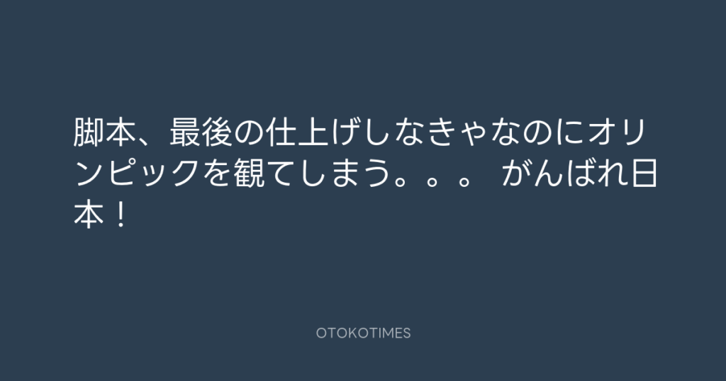 脚本、最後の仕上げしなきゃなのにオリンピックを観てしまう。。。 がんばれ日本! -