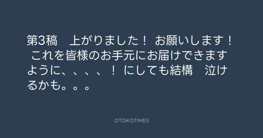 第3稿 上がりました! お願いします! これを皆様のお手元にお届けできますように... -