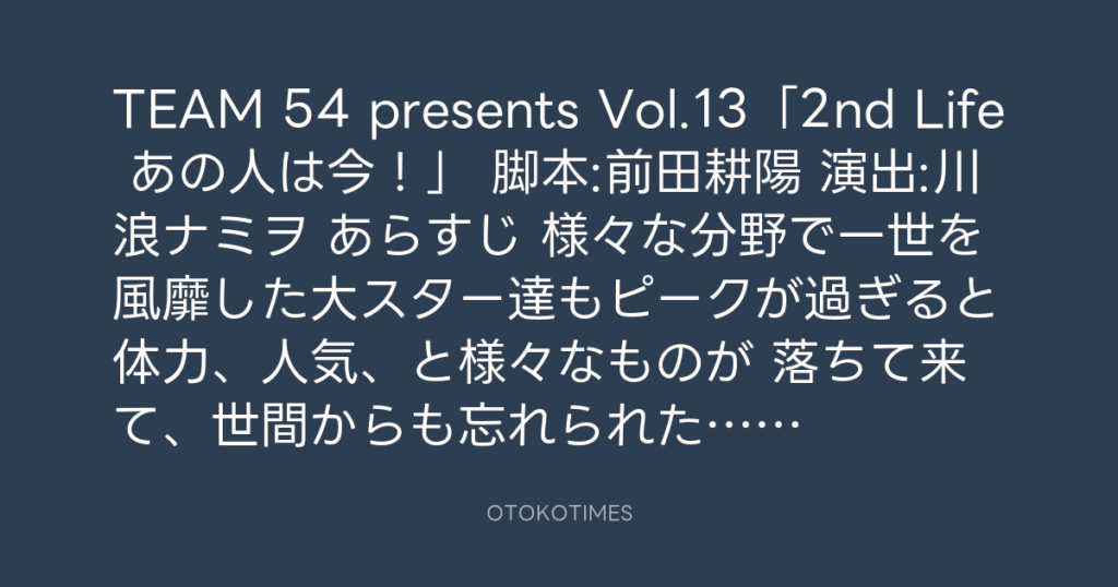 TEAM 54 presents Vol.13「2nd Life あの人は今!」 脚本:前田耕陽 演出:川浪ナミ... -