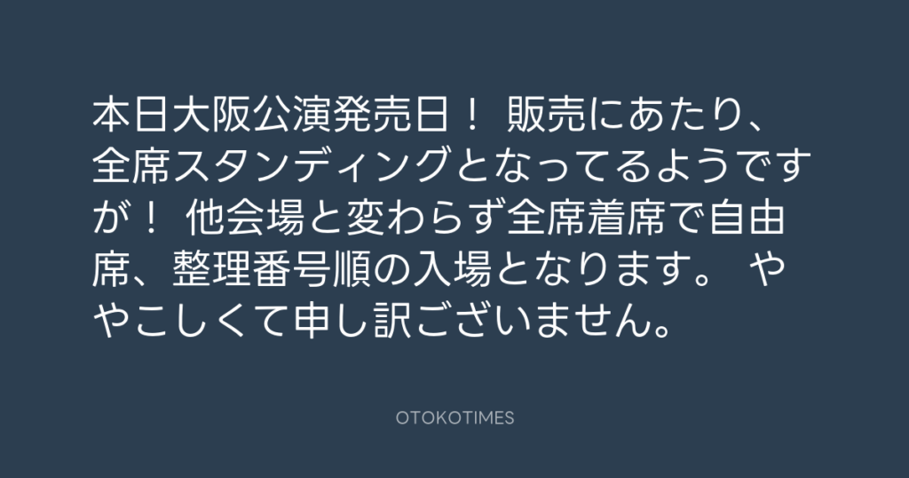 本日大阪公演発売日! 販売にあたり、全席スタンディングとなってるようですが! ... -