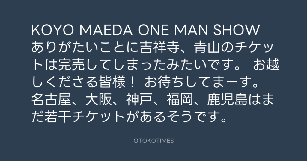 KOYO MAEDA ONE MAN SHOW ありがたいことに吉祥寺、青山のチケットは完売してしま... -