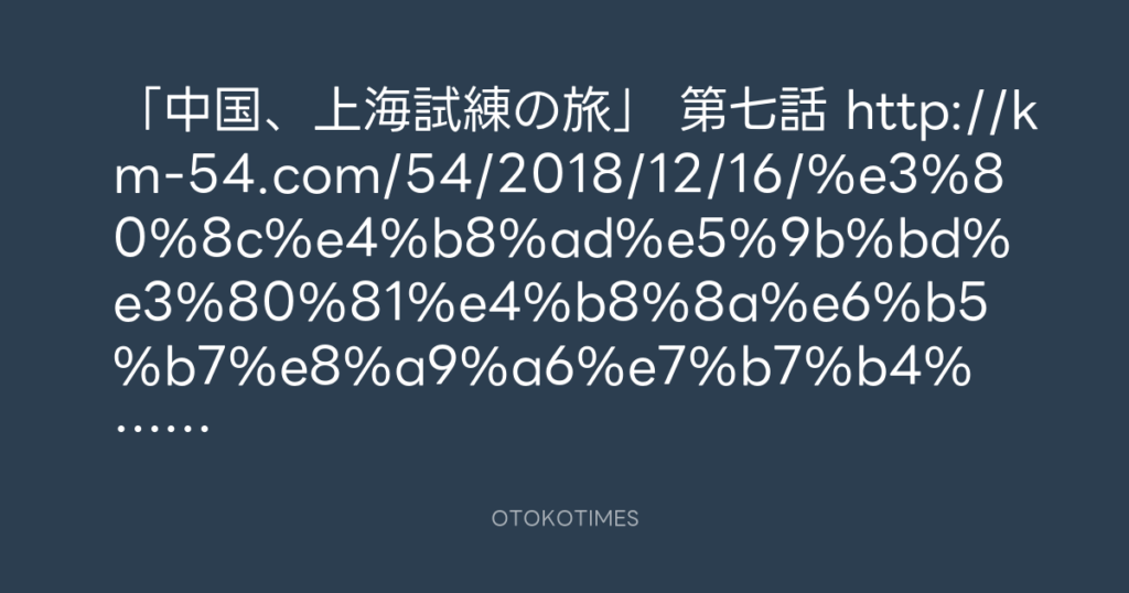 「中国、上海試練の旅」第九話 http://km-54.com/54/2018/12/18/%e3%80%8c%e4%b8%a... -