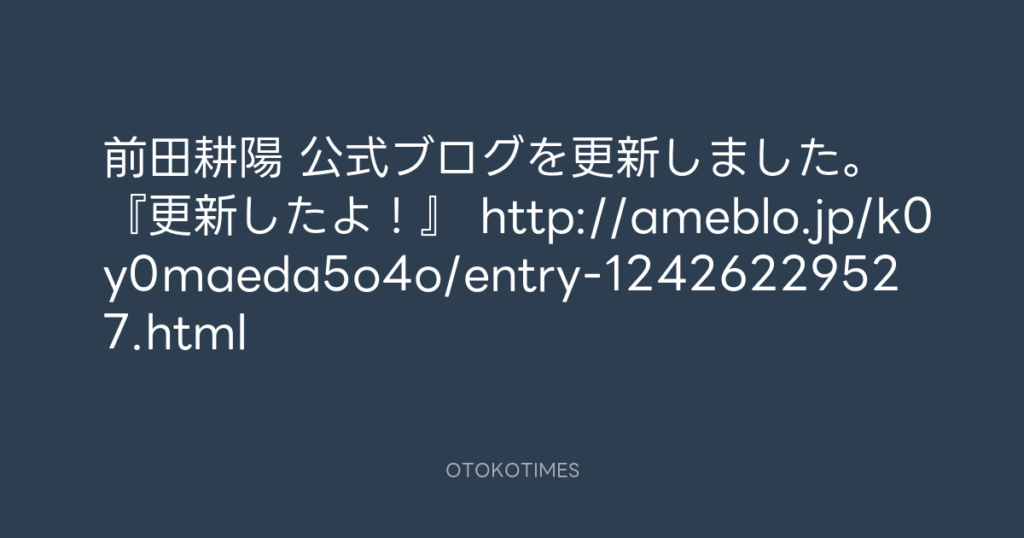 前田耕陽 公式ブログを更新しました。 『更新したよ!』 http://ameblo.jp/k0y0mae... -