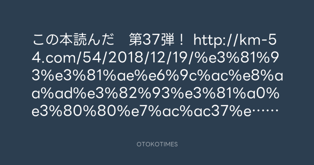 この本読んだ 第37弾! http://km-54.com/54/2018/12/19/%e3%81%93%e3%81%ae%e6%9... -