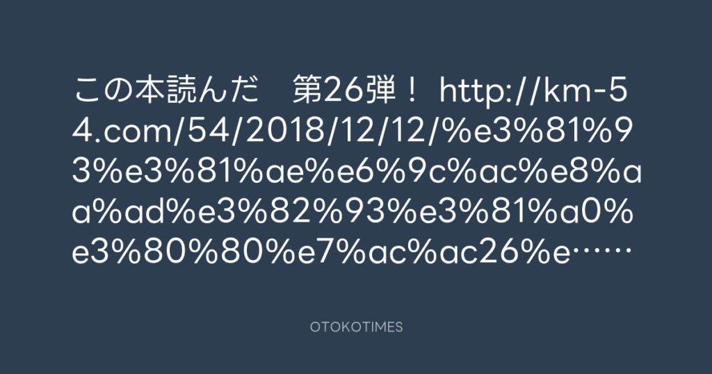 この本読んだ 第26弾! http://km-54.com/54/2018/12/12/%e3%81%93%e3%81%ae%e6%9... -