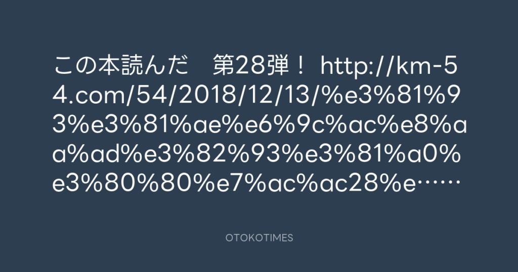 この本読んだ 第28弾! http://km-54.com/54/2018/12/13/%e3%81%93%e3%81%ae%e6%9... -