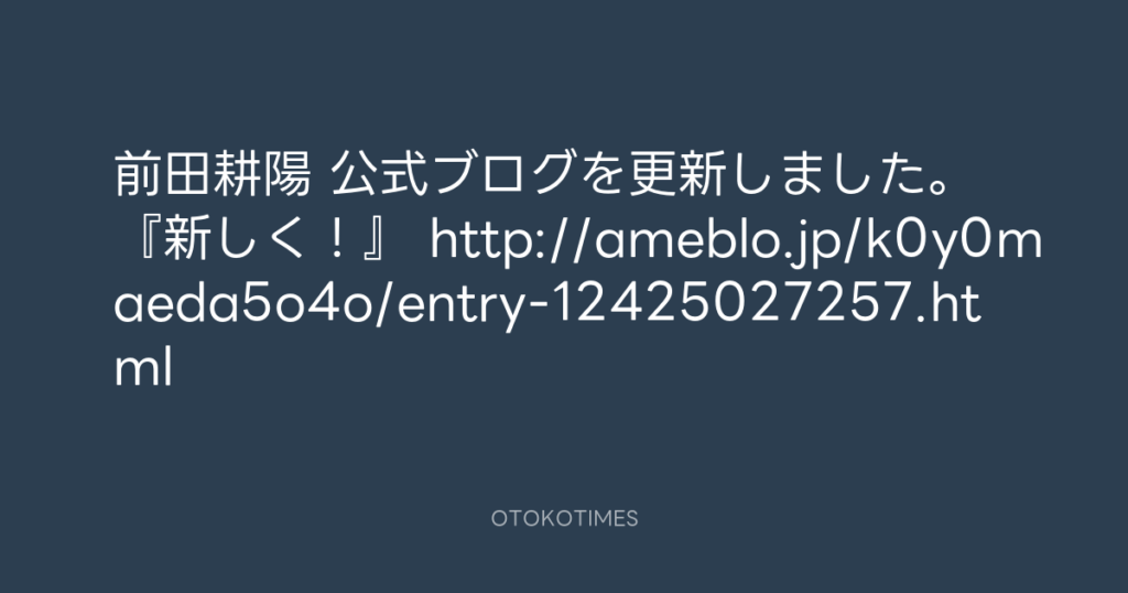 前田耕陽 公式ブログを更新しました。 『新しく!』 http://ameblo.jp/k0y0maeda5o... -