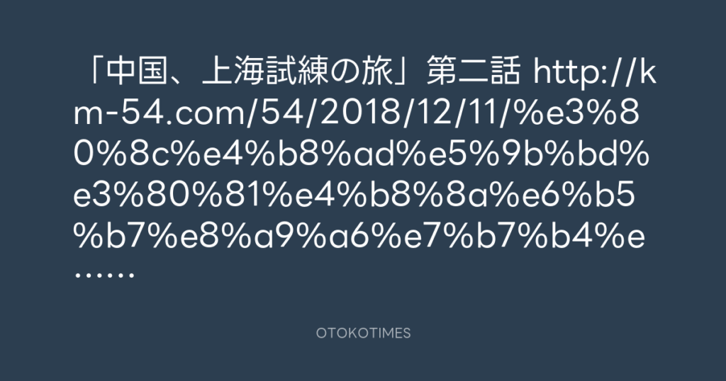 「中国、上海試練の旅」第二話 http://km-54.com/54/2018/12/11/%e3%80%8c%e4%b8%a... -