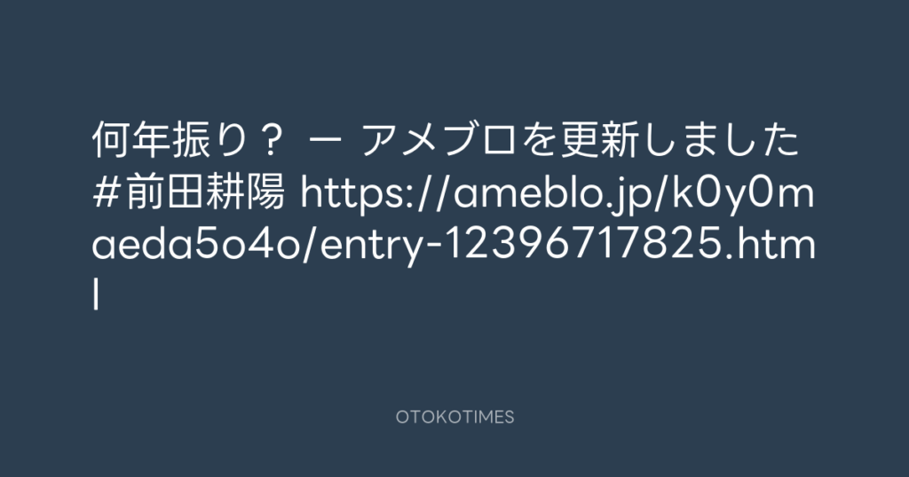 何年振り? ー アメブロを更新しました #前田耕陽 https://ameblo.jp/k0y0maeda5o4... -