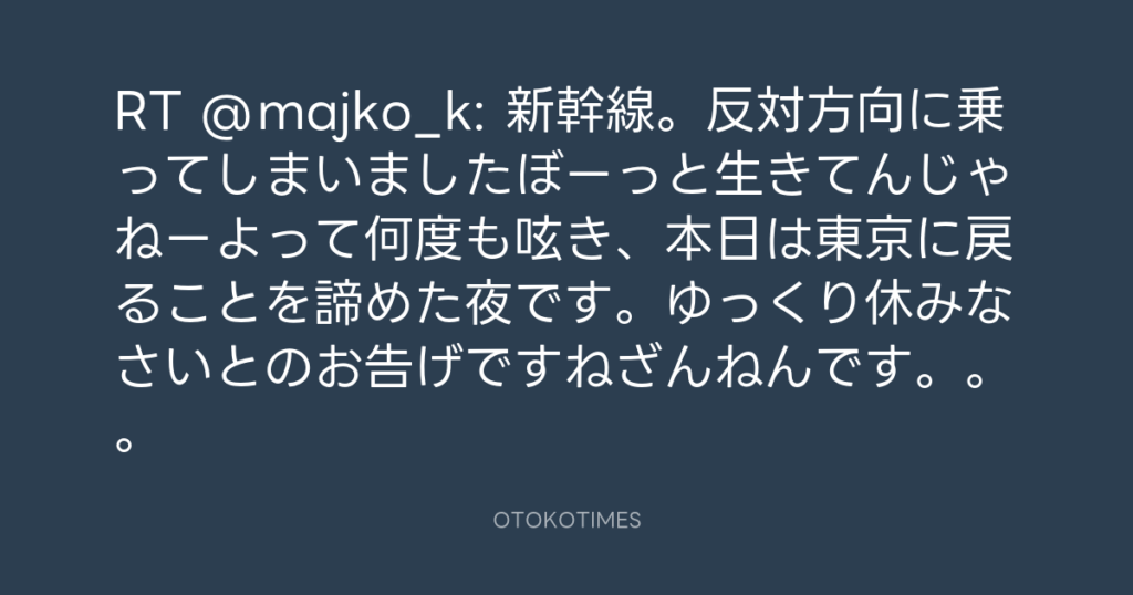 RT @majko_k: 新幹線。反対方向に乗ってしまいました😭ぼーっと生きてんじゃねーよ... -