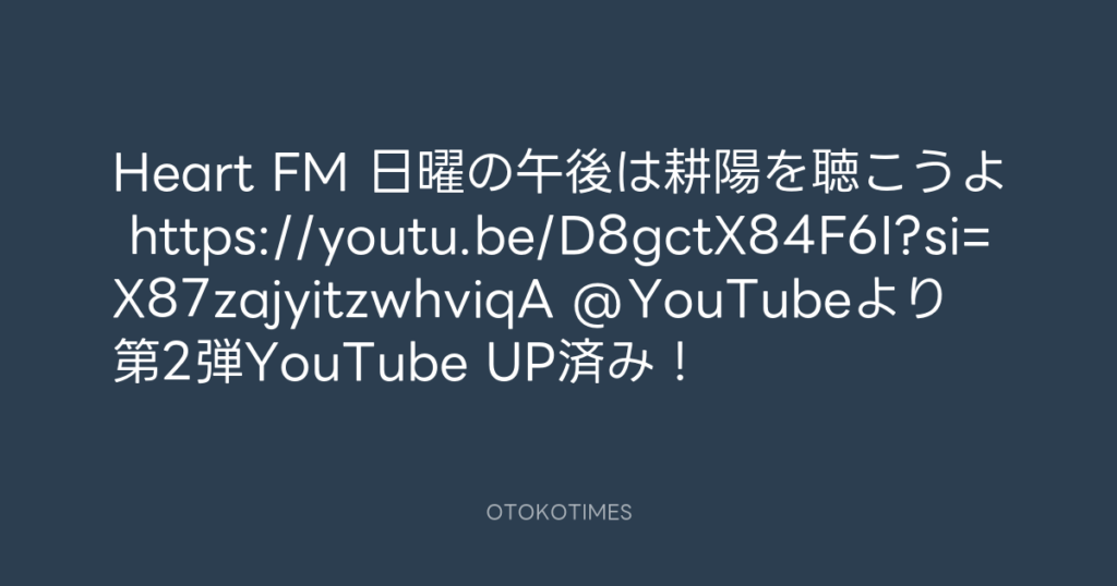 Heart FM 日曜の午後は耕陽を聴こうよ https://youtu.be/D8gctX84F6I?si=X87zajyit...
