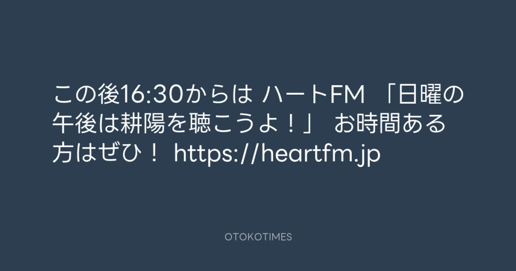 この後16:30からは ハートFM 「日曜の午後は耕陽を聴こうよ!」 お時間ある方はぜ... -