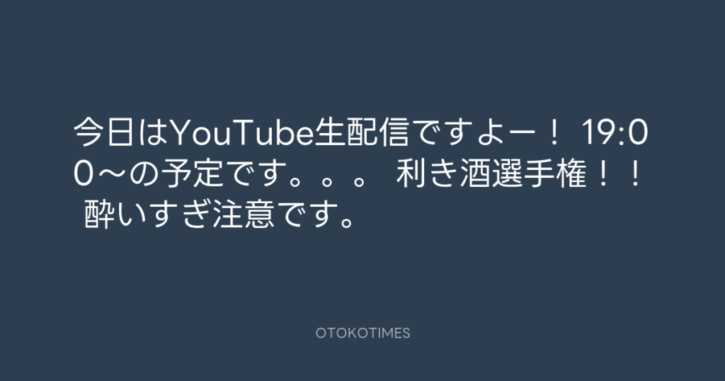 今日はYouTube生配信ですよー! 19:00〜の予定です。。。 利き酒選手権!! 酔いす... -