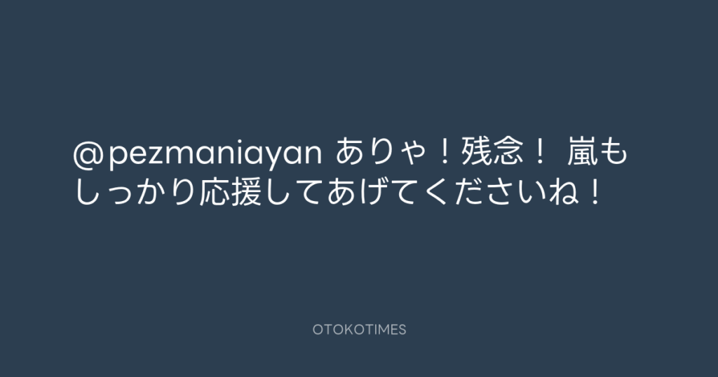 @pezmaniayan ありゃ!残念! 嵐もしっかり応援してあげてくださいね! -