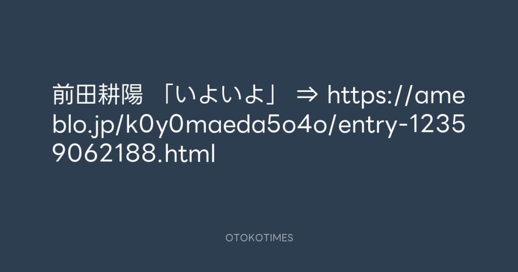 前田耕陽 「いよいよ」 ⇒ https://ameblo.jp/k0y0maeda5o4o/entry-12359062188.html -